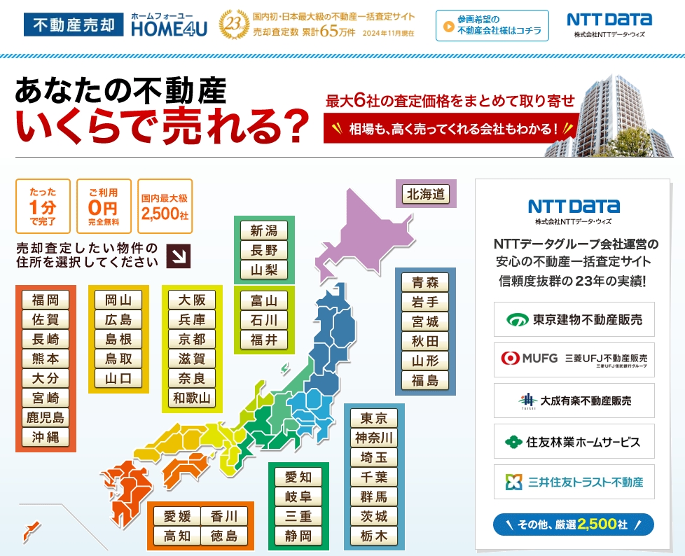HOME4U(ホームフォーユー)は、NTTデータグループ運営の日本初の不動産一括査定サイト。23年以上の運営実績があり、安心して査定を任せられると、長きにわたって高い評価を受けています。